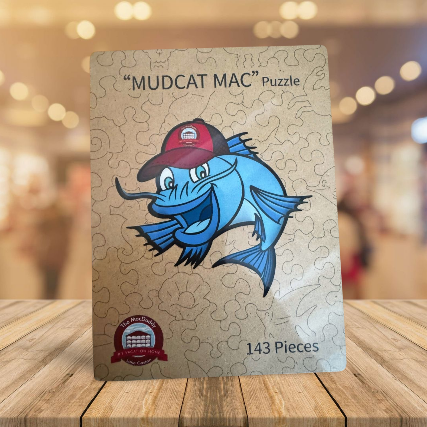 3-D wooden puzzle made of lake animals as well as other fun and unique shapes. Fun rainy day activity for all ages. Featuring MacDaddy House logo.